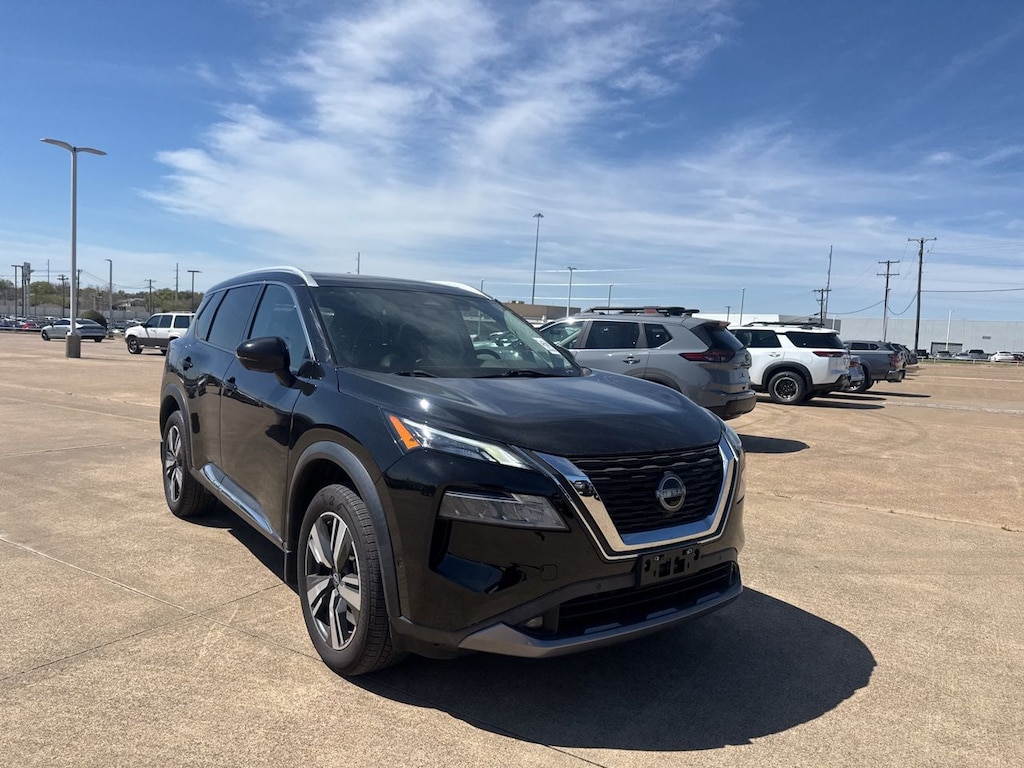 Inside, the Rogue SL pampers with leather seats, heated front seats, and a power-adjustable driver's seat with memory settings. The hands-free liftgate and remote engine start add convenience to your daily routine, while the adaptive cruise control and aerial view display system make long drives more enjoyable. Elevate your driving experience with the 2022 Nissan Rogue SL, where style meets substance.