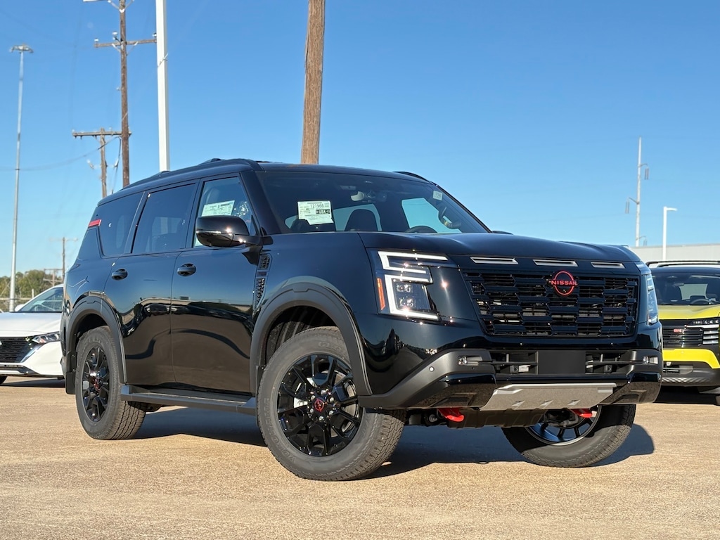 Step into the future of driving with the 2026 Nissan Armada PRO-4X, where rugged capability meets sophisticated design. This 4D Sport Utility vehicle, dressed in a sleek Super Black exterior, is engineered for those who crave adventure without compromising on style. At its heart lies a robust 3.5L DOHC engine paired with a seamless 9-speed automatic transmission, ensuring you have the power and precision to tackle any journey. The Armada PRO-4X is more than just a vehicle; it’s your partner in exploration, equipped with advanced off-road capabilities and a suite of cutting-edge technology designed to enhance every drive. Whether navigating city streets or exploring uncharted paths, the Armada’s intelligent safety features and innovative driver-assist technologies provide peace of mind and confidence. Inside, the spacious cabin offers premium materials and thoughtful amenities, creating a sanctuary of comfort for you and your passengers. Experience the perfect blend of strength, style, and sophistication with the 2026 Nissan Armada PRO-4X, and redefine what it means to drive an SUV.