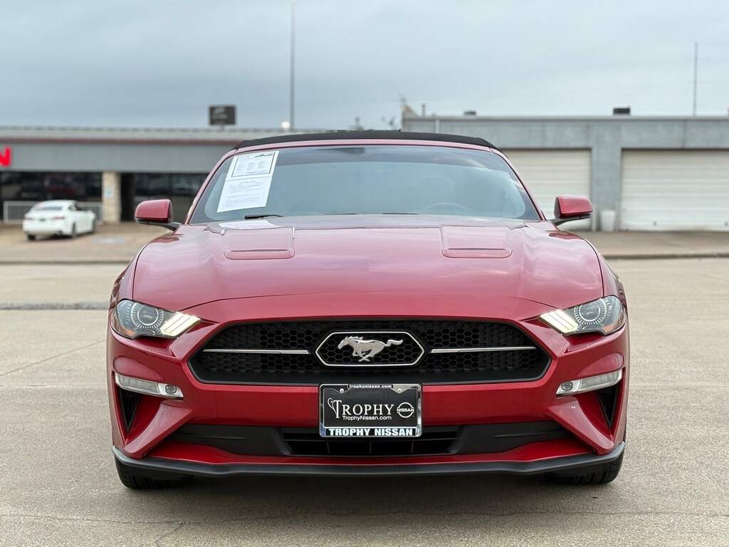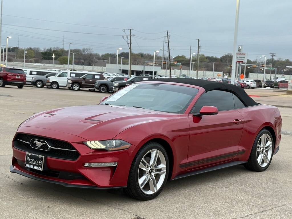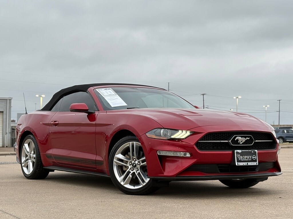 For those who crave the exhilarating spirit of a classic American muscle car, the 2020 Ford Mustang EcoBoost Premium Convertible is your perfect partner. This used Mustang, painted in a striking Red Metallic, offers a blend of power and sophistication tailored for the modern driver. With its 2.3L I4 Turbocharged EcoBoost engine, this convertible delivers a thrilling performance, while the 10-speed automatic transmission ensures seamless gear shifts, enhancing your driving experience.