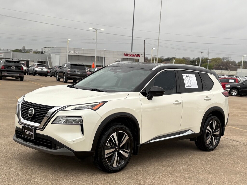 Step into the world of refined driving with the 2021 Nissan Rogue SL, designed for those who seek more than just a commute. This Pearl White Tricoat/Super Black beauty offers a seamless blend of style and substance, perfect for the discerning driver. With a 2.5L I4 DOHC 16V engine, this SUV promises a smooth yet powerful ride, while the CVT with Xtronic transmission ensures effortless transitions on every journey. Safety takes center stage with features like Blind Spot Monitor, Lane Keeping Assist, and Rear Collision Mitigation, providing peace of mind on the road. Inside, indulge in luxury with heated leather seats, a heated steering wheel, and a panoramic roof that invites the sky into your drive. Stay connected with the advanced Bluetooth system, WiFi hotspot, and smart device integration, making every drive both productive and enjoyable. The hands-free liftgate and remote engine start add convenience to your busy lifestyle, while adaptive cruise control and an aerial view display system redefine modern driving. Embrace the perfect companion for your adventures, where every feature is crafted to enhance your driving experience.